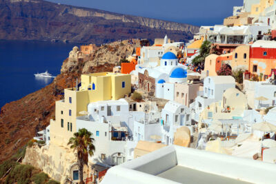 - Many hotels on Santorini don’t allow children under the age of 13 due to safety precautions as hotels are mostly built directly into the cliffs.