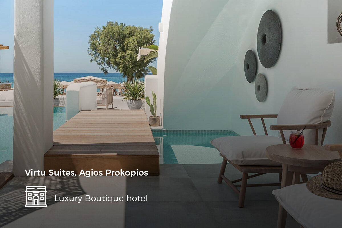 Explore Naxos from a bohemian oasis at the Virtu Suites, or have a tranquil holiday in a rustic-chic dwelling at the Villa Marandi. With island vibes and natural details, the hotels on Naxos are relaxed and classicly Greek.