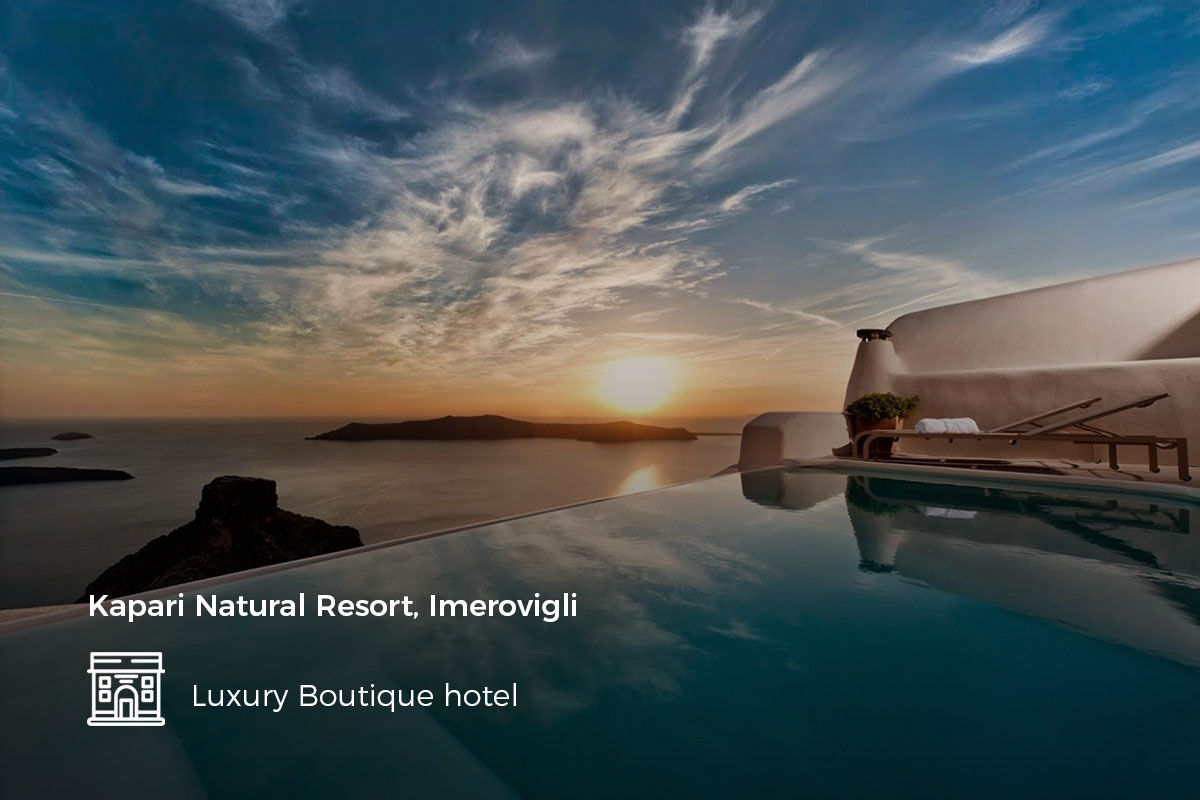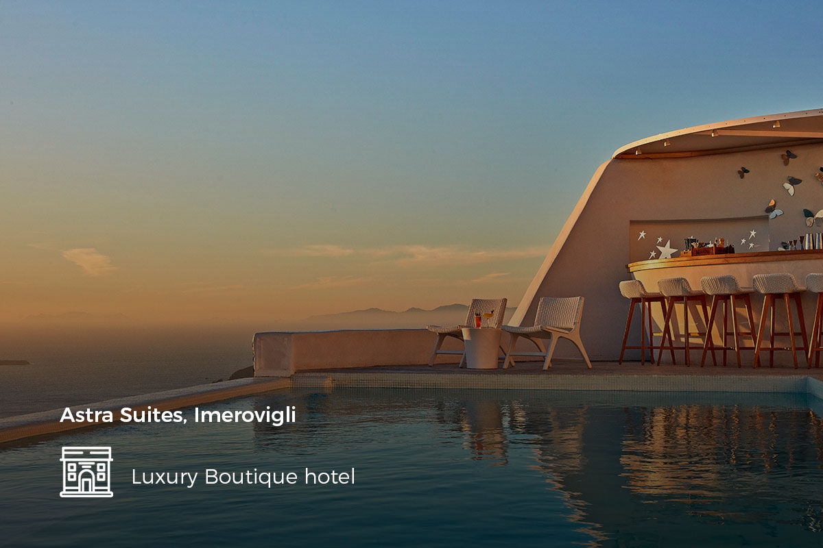 From dramatic caldera views and traditional cycladic styles, to infinity pools and gourmet restaurants, the hotels on Santorini have it all. Our favorites include Anteliz Hotel in Fira, Astra Suites, Kapari Natural Resort, and Cavo Tagoo in Imerovigli, as well as the Ikies Traditional Houses and the Canaves Oia Suites in Oia.