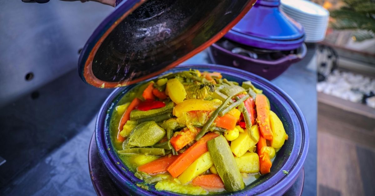 Across the Mediterranean in Morocco, family meals are a sensory experience—fragrant, colorful, and communal. The table centerpiece is often tagine, a slow-cooked stew of lamb, vegetables, and preserved lemons served in its signature clay pot. Bread replaces utensils, and everyone eats from the same dish, symbolizing unity and connection. In Moroccan culture, meals are as much about the conversation and hospitality as they are about the flavors—a perfect reflection of the Thanksgiving spirit.
